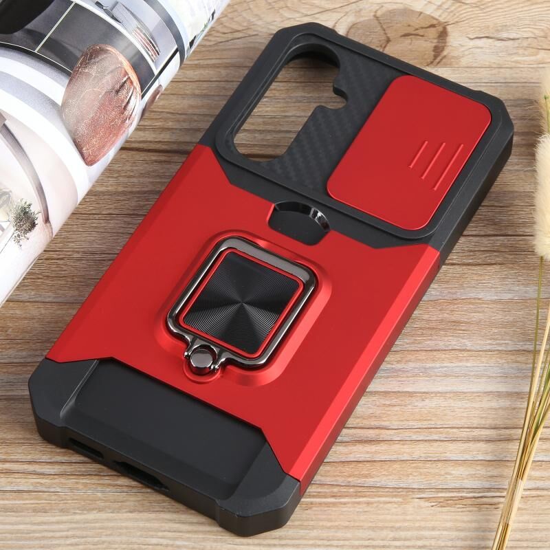 Για Samsung Galaxy S23 FE 5G κάμερα ασπίδα κάρτας Υποδοχή PC + TPU τηλέφωνο υπόθεση (κόκκινο)