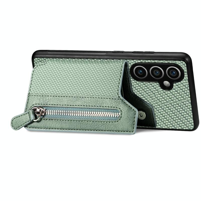 Για Samsung Galaxy S23 FE 5G ινών άνθρακα οριζόντια Flip φερμουάρ πορτοφόλι υπόθεση τηλεφώνου (πράσινο)