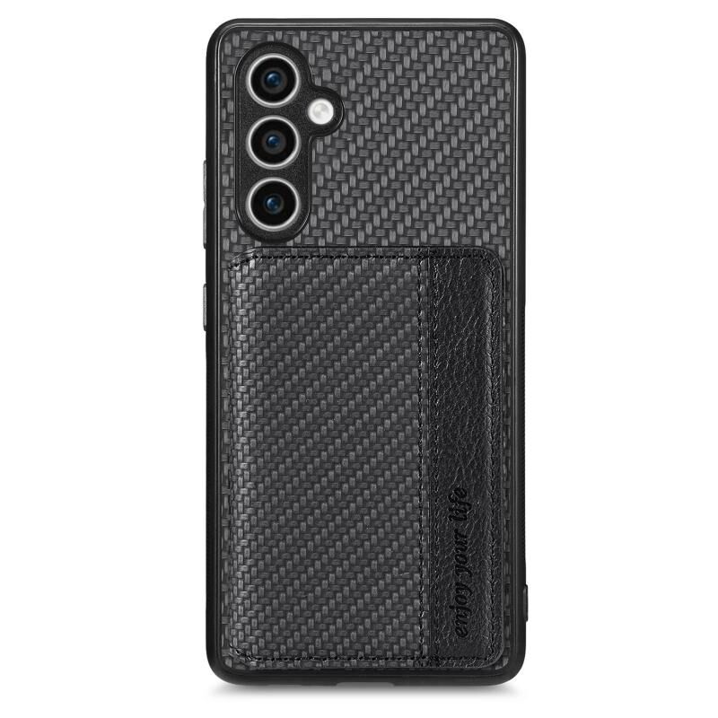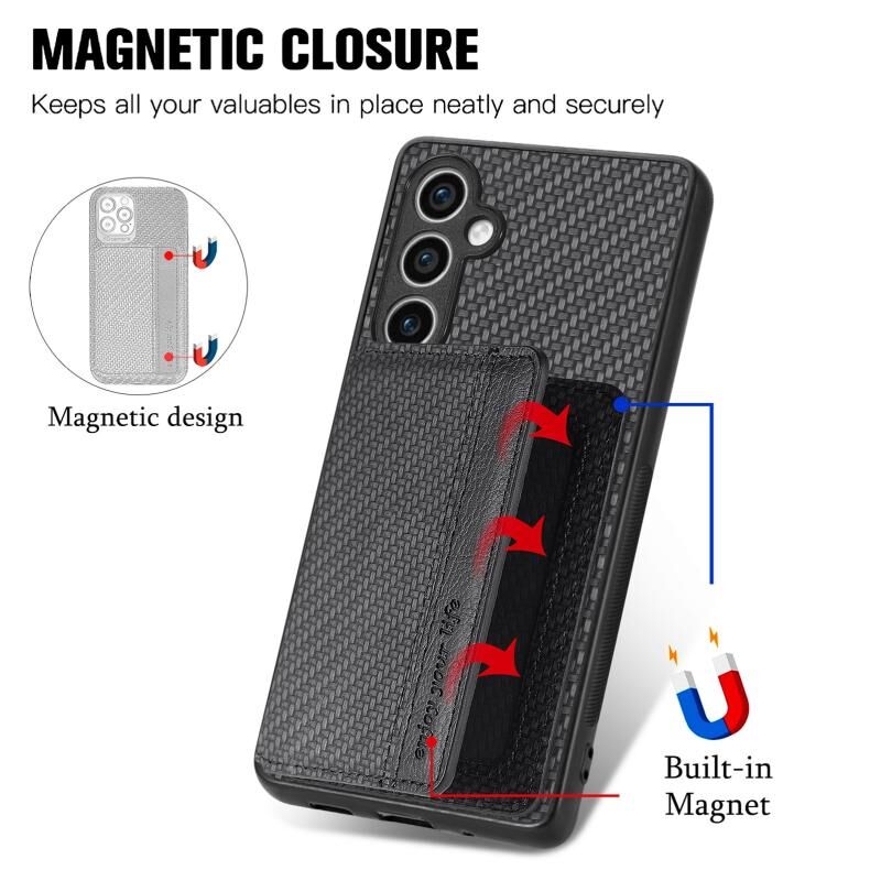 Για Samsung Galaxy S23 FE 5G Carbon Fiber μαγνητική κάρτα πορτοφόλι RFID μπλοκάρισμα τηλέφωνο υπόθεση (Μαύρο)