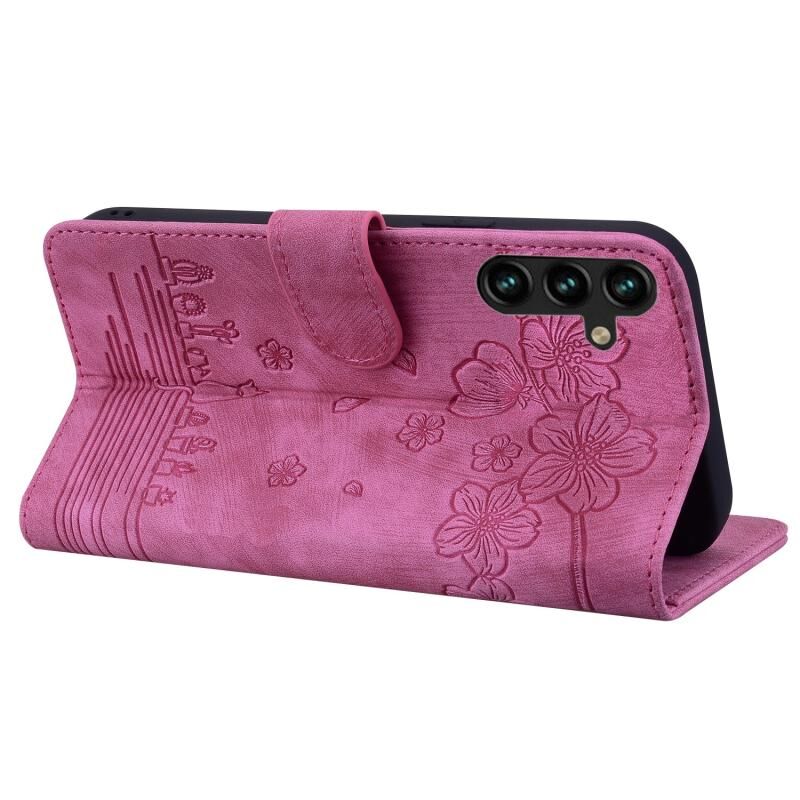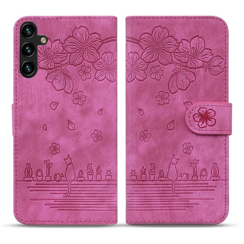 For Samsung Galaxy S23 FE 5G Cartoon Sakura Cat Embossed Leather Phone Case(Rose Red)