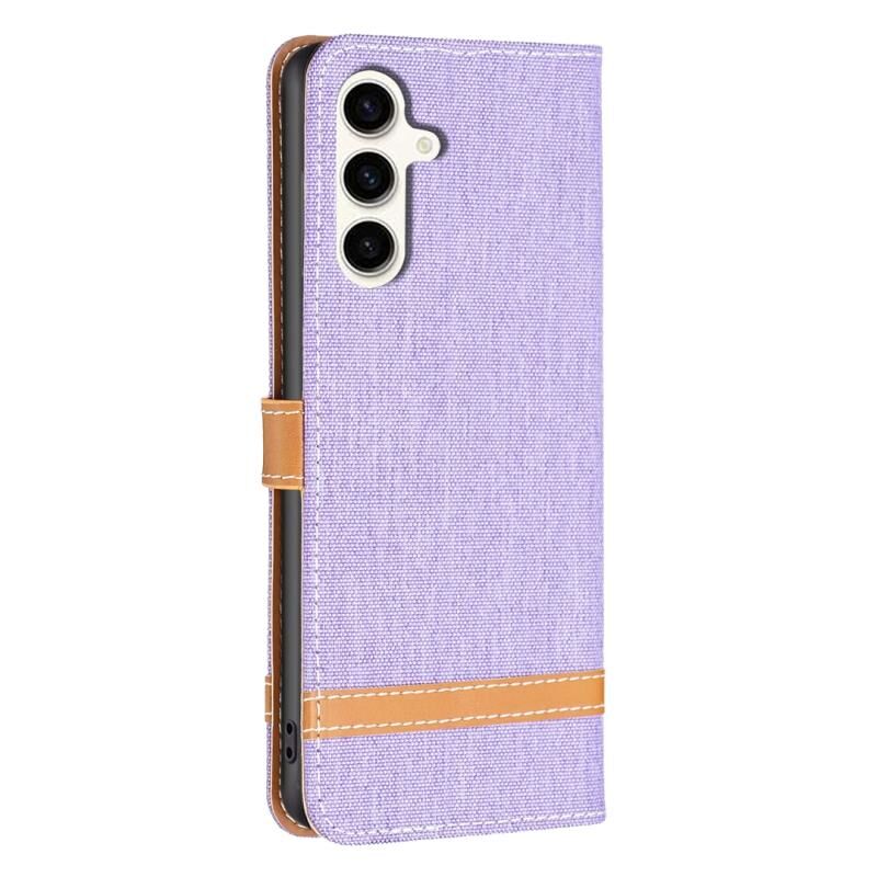 Για Samsung Galaxy S23 FE 5G Color Block Denim Texture Δερμάτινη θήκη τηλεφώνου (μωβ)