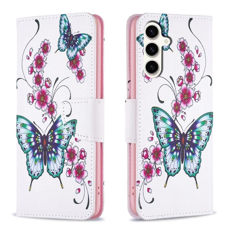 Θήκη τηλεφώνου Samsung Galaxy S23 FE 5G από δέρμα με έγχρωμο σχέδιο (Λουλούδια Πεταλούδα)
