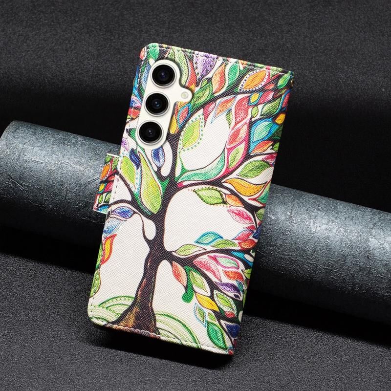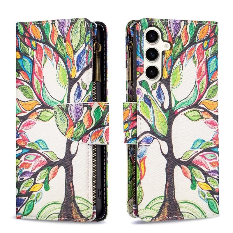 Θήκη τηλεφώνου Samsung Galaxy S23 FE 5G από δέρμα με φερμουάρ και σχέδιο ζωγραφικής (Μεγάλο Δέντρο)