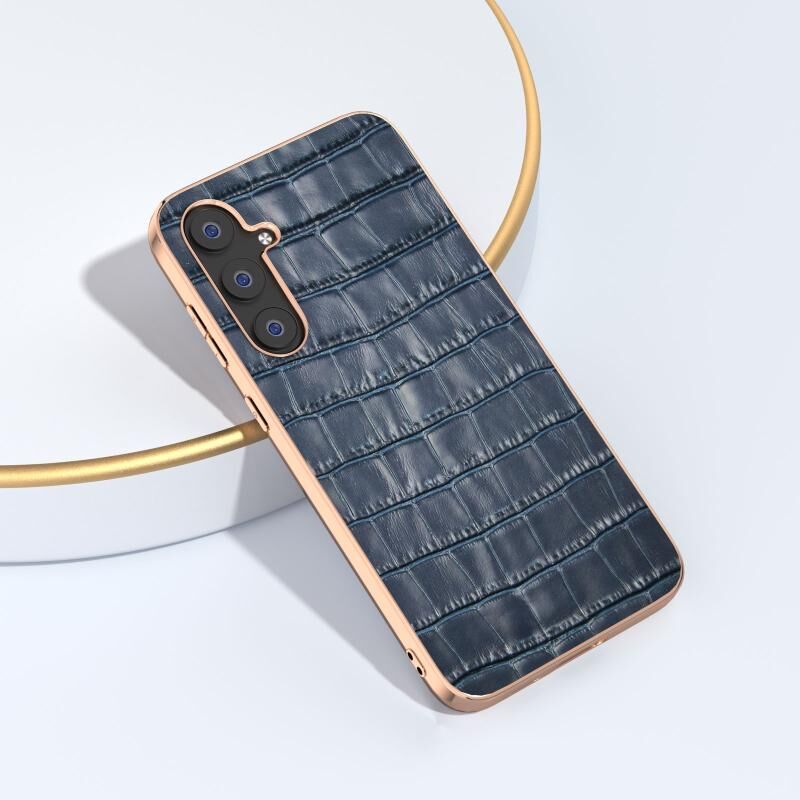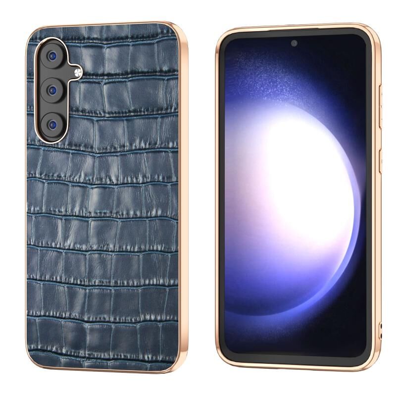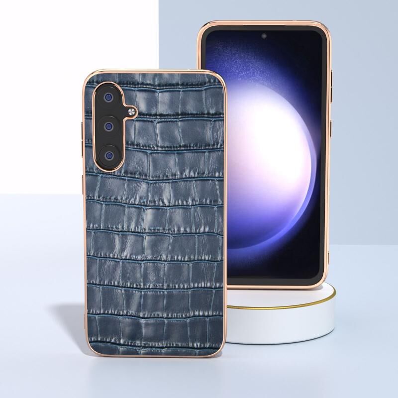 Θήκη τηλεφώνου Samsung Galaxy S23 FE 5G με γνήσιο δέρμα υφής κροκόδειλου και ηλεκτρολυτική επίστρωση (Σκούρο Πράσινο)