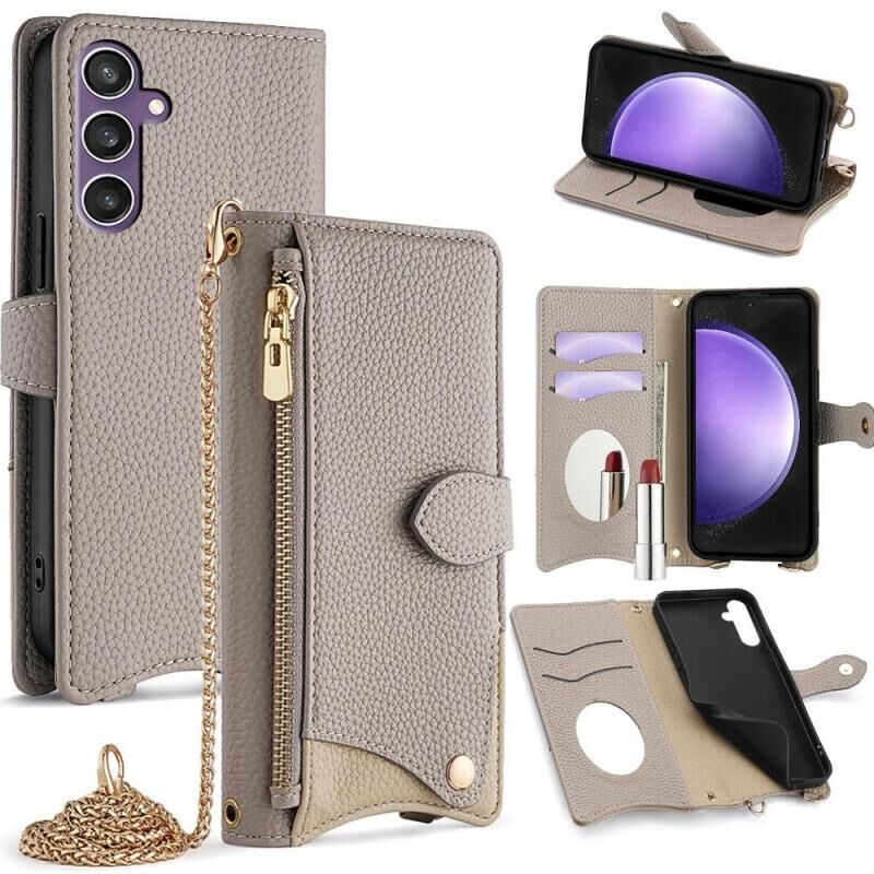 Για Samsung Galaxy S23 FE 5G Σταυρός σώμα αλυσίδα Fishtail Litchi δέρμα τηλέφωνο υπόθεση (γκρι)
