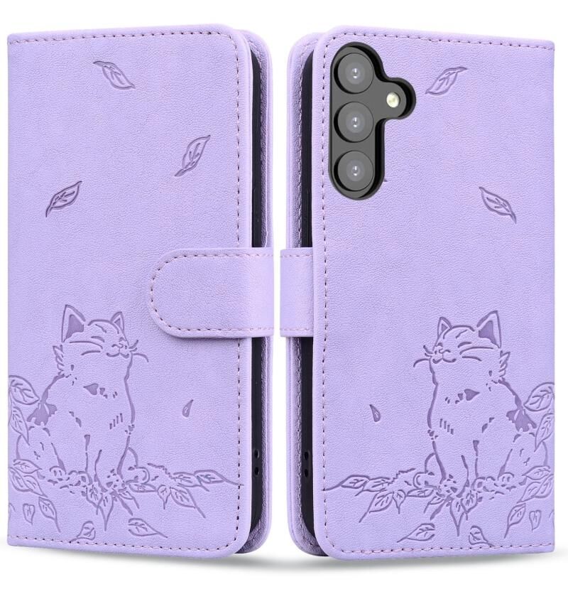 Θήκη τηλεφώνου από δέρμα με ανάγλυφο χαριτωμένο γατάκι για Samsung Galaxy S23 FE 5G (Πράσινο)