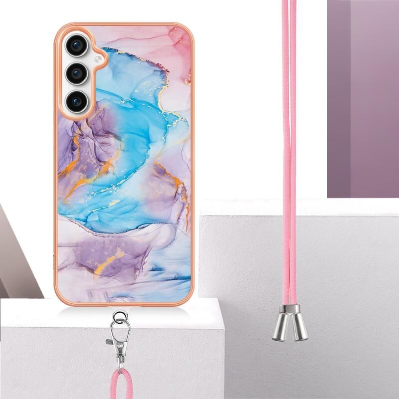 Θήκη κινητού τηλεφώνου Samsung Galaxy S23 FE 5G με επιμετάλλωση IMD TPU με κορδόνι (Μπλε Μάρμαρο)