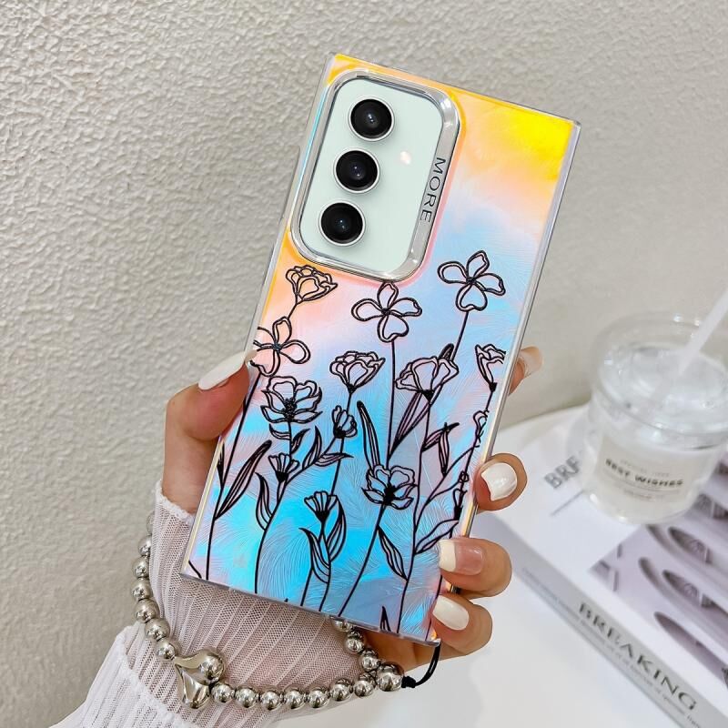 Θήκη τηλεφώνου για Samsung Galaxy S23 FE 5G με ηλεκτρολυτική επίστρωση, λουλουδάτο σχέδιο λέιζερ και λουρί καρπού (Σχέδια Λουλουδιών AH3)