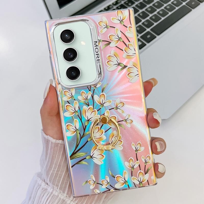 Θήκη τηλεφώνου TPU με δακτύλιο στήριξης και σχέδιο λουλουδιών με λέιζερ και ηλεκτρολυτική επικάλυψη για Samsung Galaxy S23 FE 5G (Λουλούδι Αχλαδιού AH17)