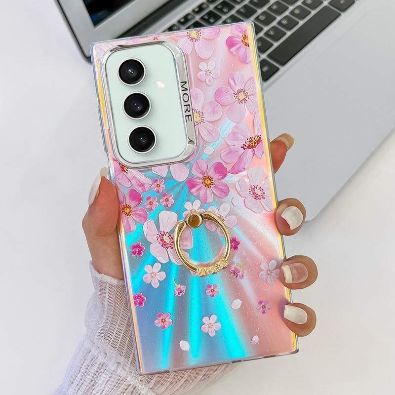Θήκη κινητού τηλεφώνου Samsung Galaxy S23 FE 5G TPU με δακτύλιο στήριξης και σχέδιο λουλουδιού με λέιζερ και ηλεκτρολυτική επικάλυψη (Λευκό Λουλούδι AH10)