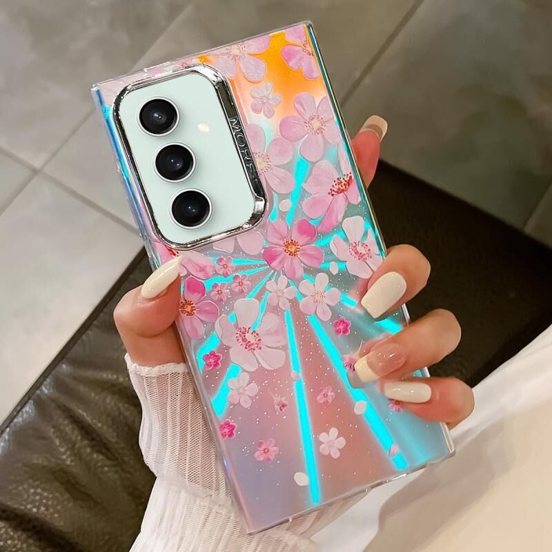 Θήκη τηλεφώνου TPU με ηλεκτρολυτική επίστρωση, λουλουδάτο σχέδιο λέιζερ για Samsung Galaxy S23 FE 5G (Λευκό Λουλούδι AH10)