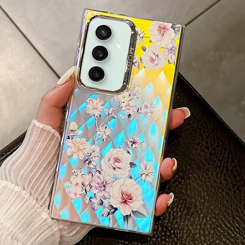 Θήκη τηλεφώνου TPU με ηλεκτρολυτική επίστρωση, λουλουδάτο σχέδιο λέιζερ για Samsung Galaxy S23 FE 5G (Ροζ AH15)