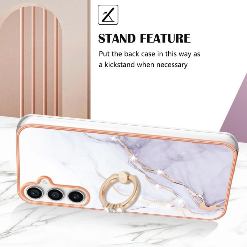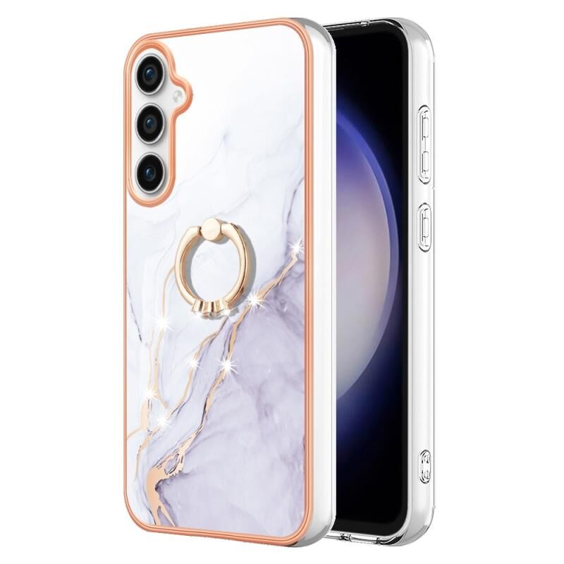 Θήκη κινητού τηλεφώνου Samsung Galaxy S23 FE 5G με Ηλεκτρολυτική επικάλυψη, σχέδιο Μάρμαρου IMD, από TPU με Δαχτυλίδι Στήριξης (Λευκό 006)