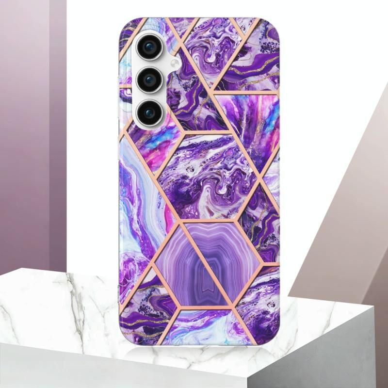 Θήκη τηλεφώνου TPU με ηλεκτρολυτική επιμετάλλωση και μαρμάρινη σύνθεση για Samsung Galaxy S23 FE 5G (Μπλε)