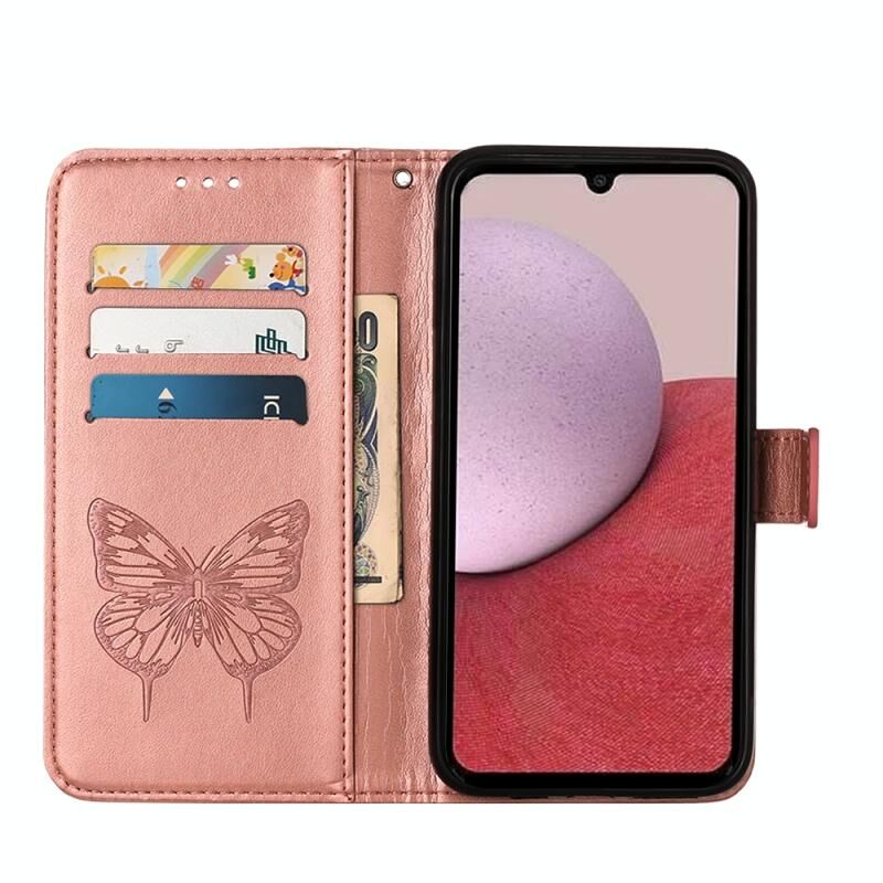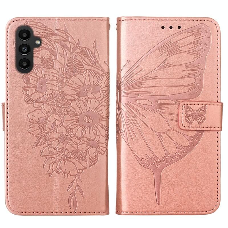 Για Samsung Galaxy S23 FE 5G ανάγλυφη πεταλούδα δερμάτινη θήκη τηλεφώνου (ροζ χρυσό)