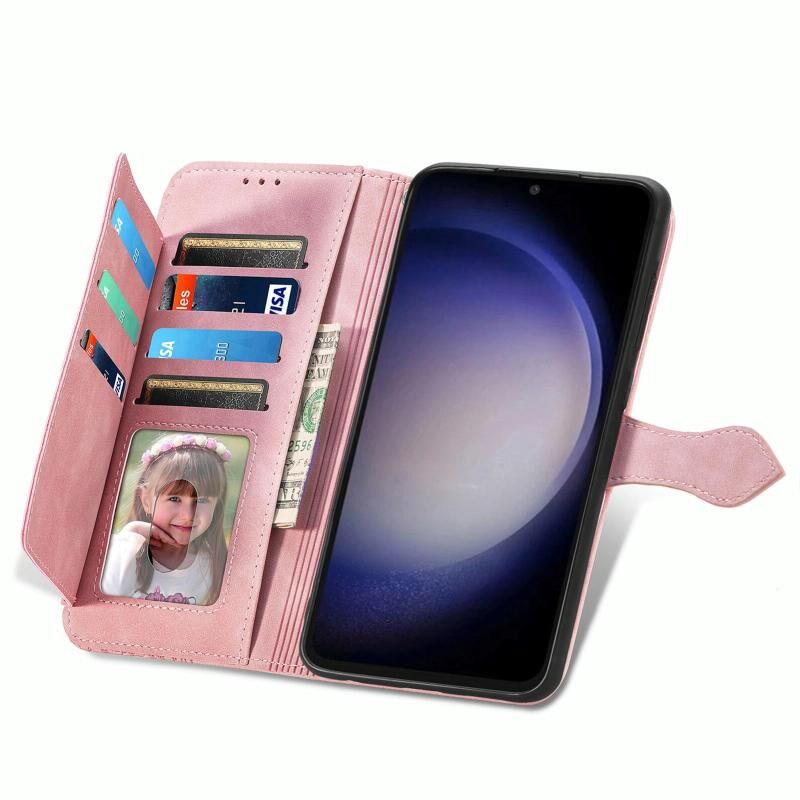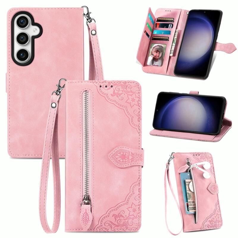 Για Samsung Galaxy S23 FE 5G ανάγλυφο λουλούδι φερμουάρ δερμάτινη θήκη τηλεφώνου (ροζ)