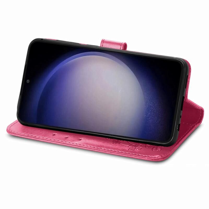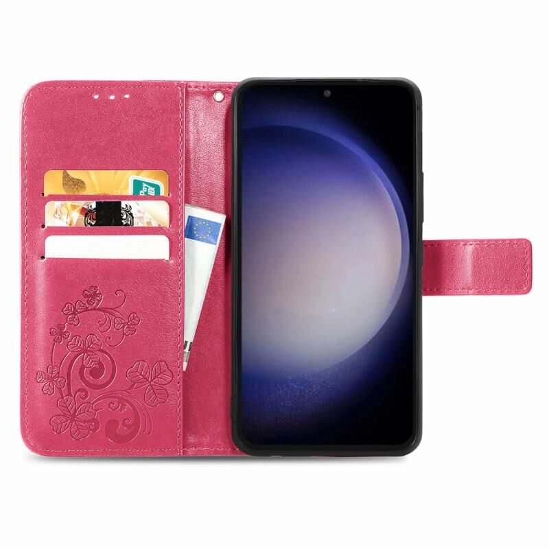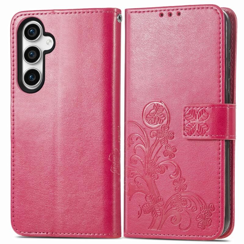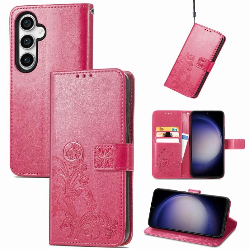 Για Samsung Galaxy S23 FE 5G Four-leaf Clasp ανάγλυφη αγκράφα δερμάτινη θήκη τηλεφώνου (Ματζέντα)