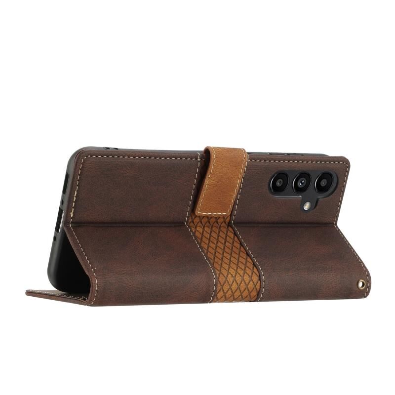 Για το Samsung Galaxy S23 FE 5G Πλέγμα Stitching Δερμάτινη θήκη τηλεφώνου με κορδόνι (καφέ)
