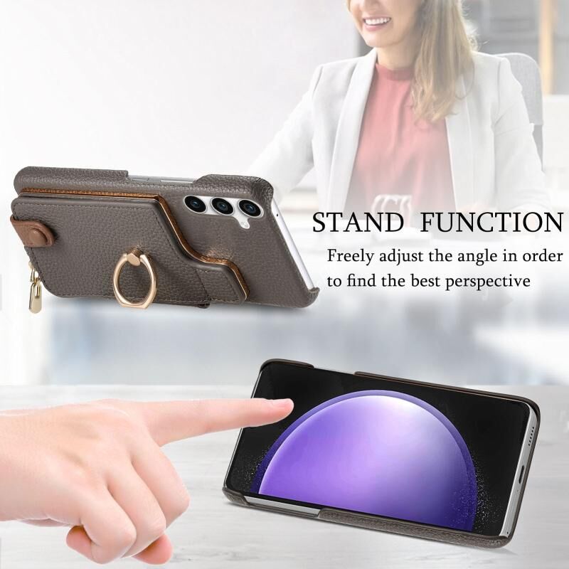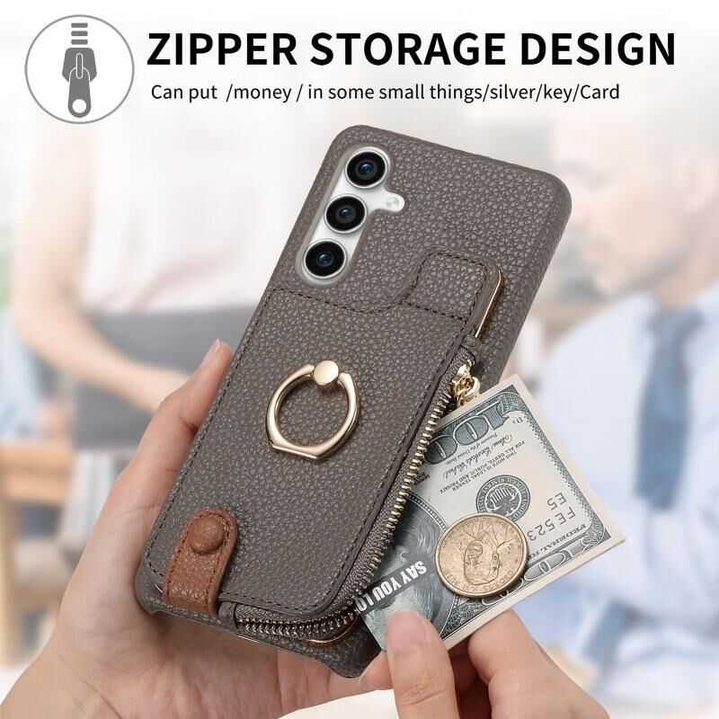 Για Samsung Galaxy S23 FE 5G Litchi δέρμα λάδι Edge δαχτυλίδι φερμουάρ πορτοφόλι πίσω θήκη τηλεφώνου (γκρι)