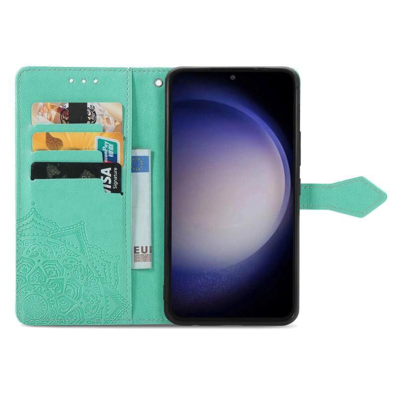 Για Samsung Galaxy S23 FE 5G Mandala λουλούδι ανάγλυφο δερμάτινη θήκη τηλεφώνου (πράσινο)