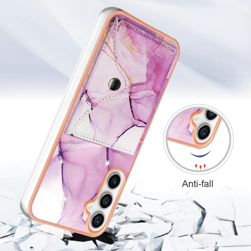 For Samsung Galaxy S23 FE 5G Marble Pattern IMD Card Slot Phone Case(Pink Purple Gold)