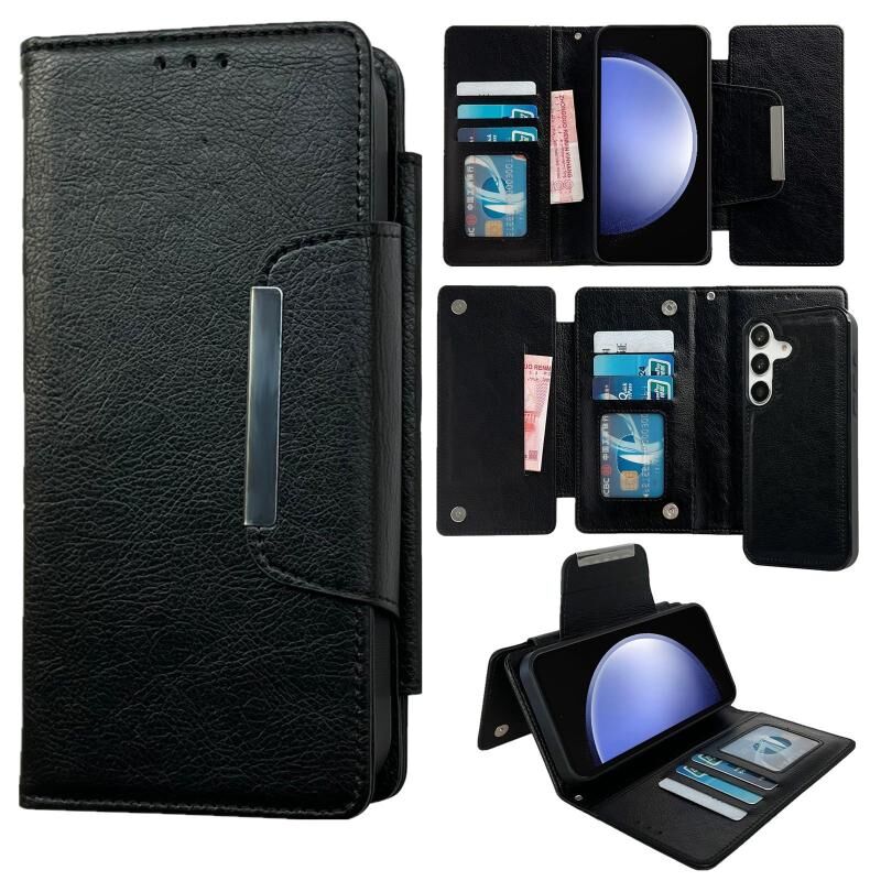 Για Samsung Galaxy S23 FE 5G Πολυλειτουργική 7-κάρτα πορτοφόλι δερμάτινη θήκη τηλεφώνου (Μαύρο)