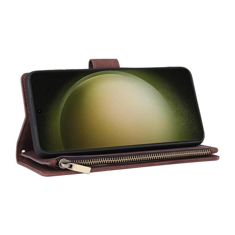 For Samsung Galaxy S23 FE 5G Multifunctional Frosted Zipper Wallet Leather Phone Case(Coffee)