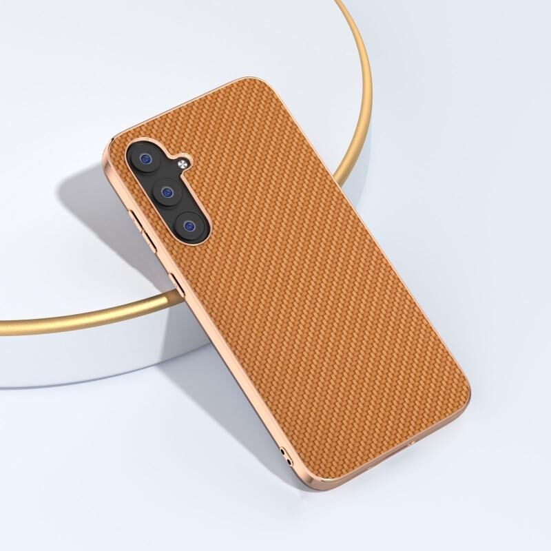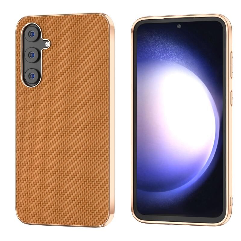 Για Samsung Galaxy S23 FE 5G Nano Electroplating Carbon Fiber Texture υπόθεση τηλεφώνου (καφέ)