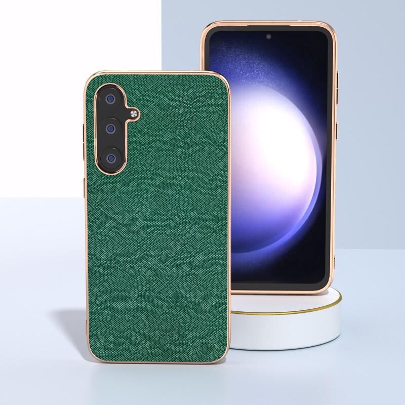 Θήκη τηλεφώνου από γνήσιο δέρμα με σταυρωτή υφή και νανο-επίχρυση για Samsung Galaxy S23 FE 5G (Πράσινο)