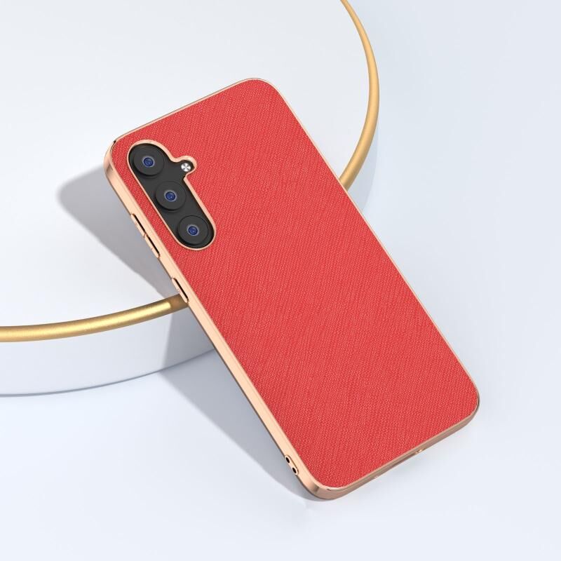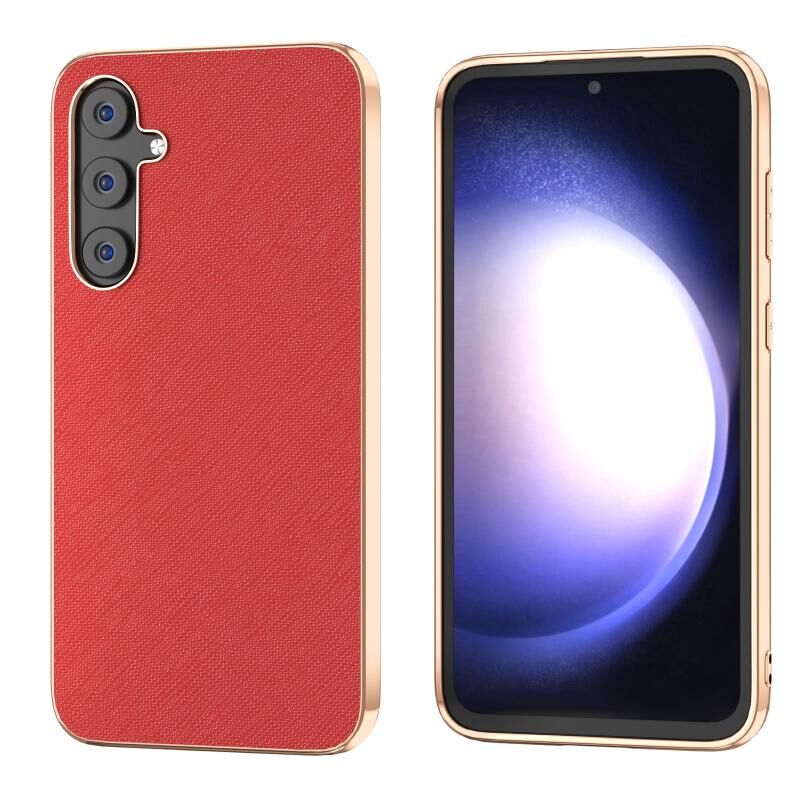 Θήκη τηλεφώνου από γνήσιο δέρμα με σταυρωτή υφή και νανο-επίχρυση για Samsung Galaxy S23 FE 5G (Πράσινο)