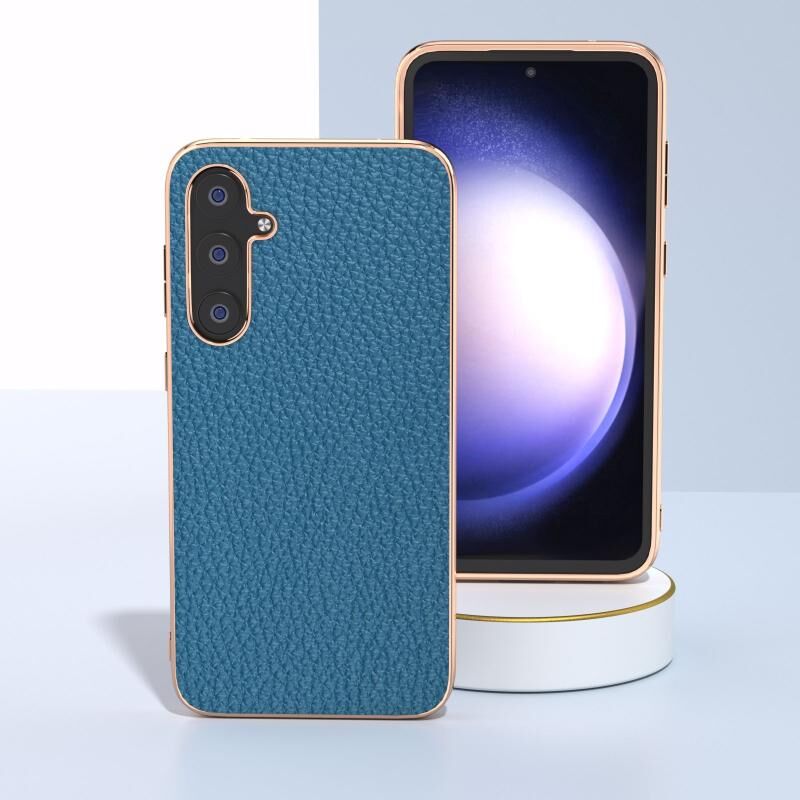 Θήκη τηλεφώνου Samsung Galaxy S23 FE 5G Νανο-επίχρυση, Γνήσιο Δέρμα με Υφή Λίτσι (Μπλε)