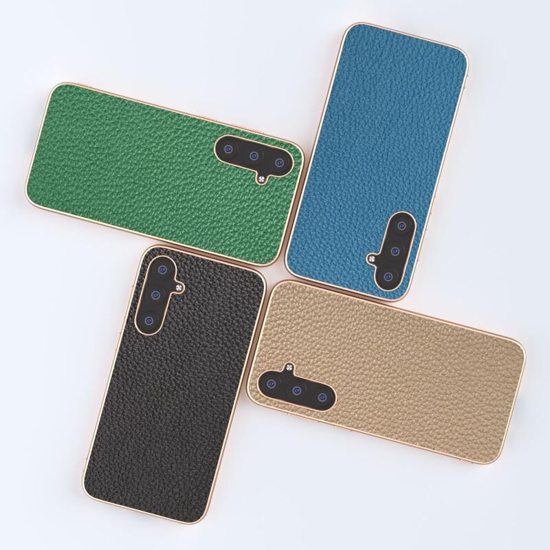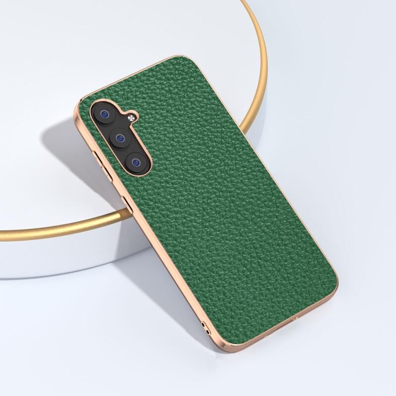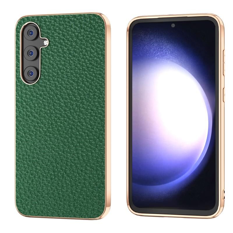 Θήκη τηλεφώνου Samsung Galaxy S23 FE 5G Νανο-επίχρυση, Γνήσιο Δέρμα με Υφή Λίτσι (Μπλε)