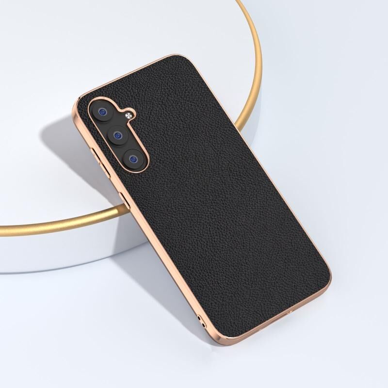 Θήκη τηλεφώνου Samsung Galaxy S23 FE 5G Νανο-επίχρυση, Γνήσιο Δέρμα + PC, Υφή Λίτσι (Μαύρο)