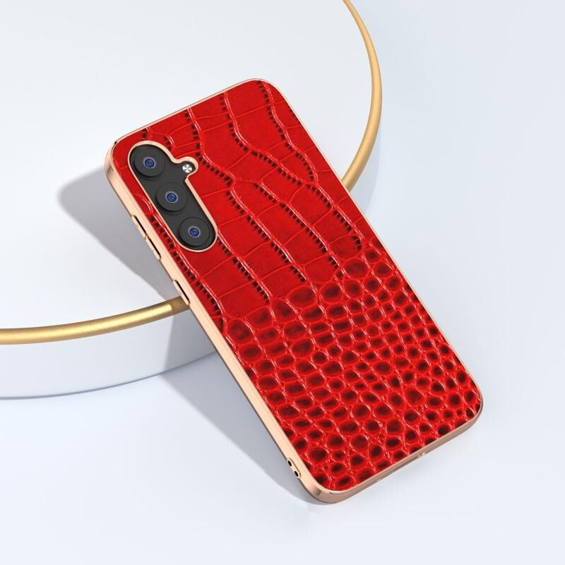 Θήκη τηλεφώνου Samsung Galaxy S23 FE 5G με Νανο-επίστρωση, Γνήσιο Δέρμα με μοτίβο Κροκόδειλου (Μαύρο)