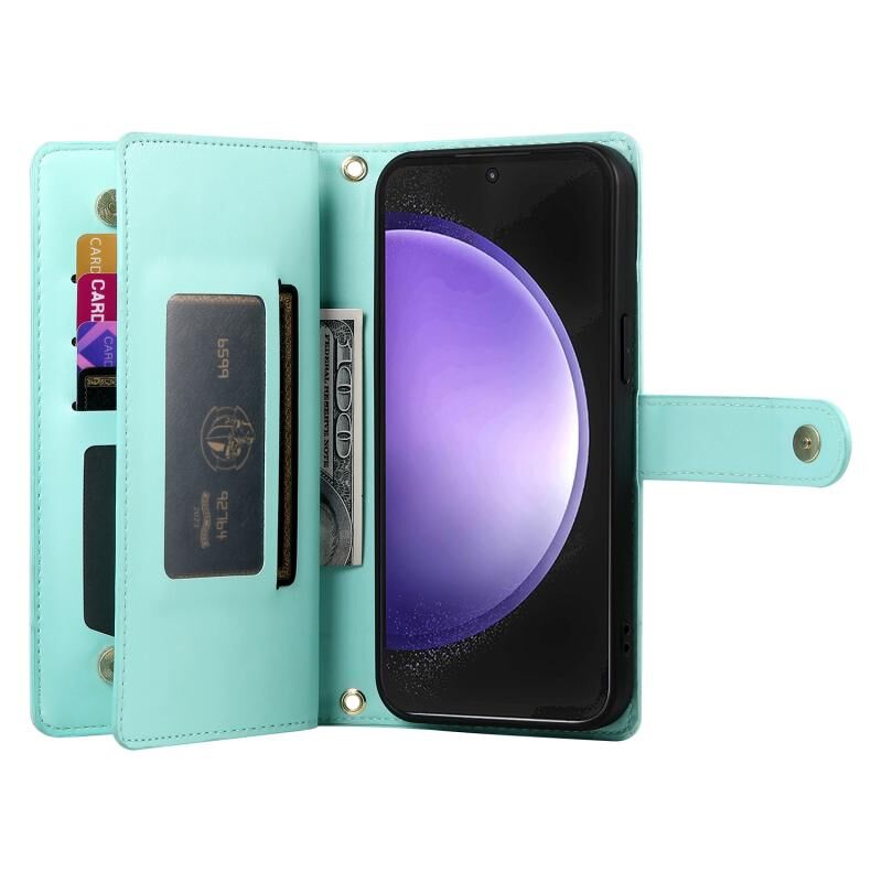 For Samsung Galaxy S23 FE 5G Nine Card-slot Zipper Wallet Bag Leather Phone Case(Mint Green)