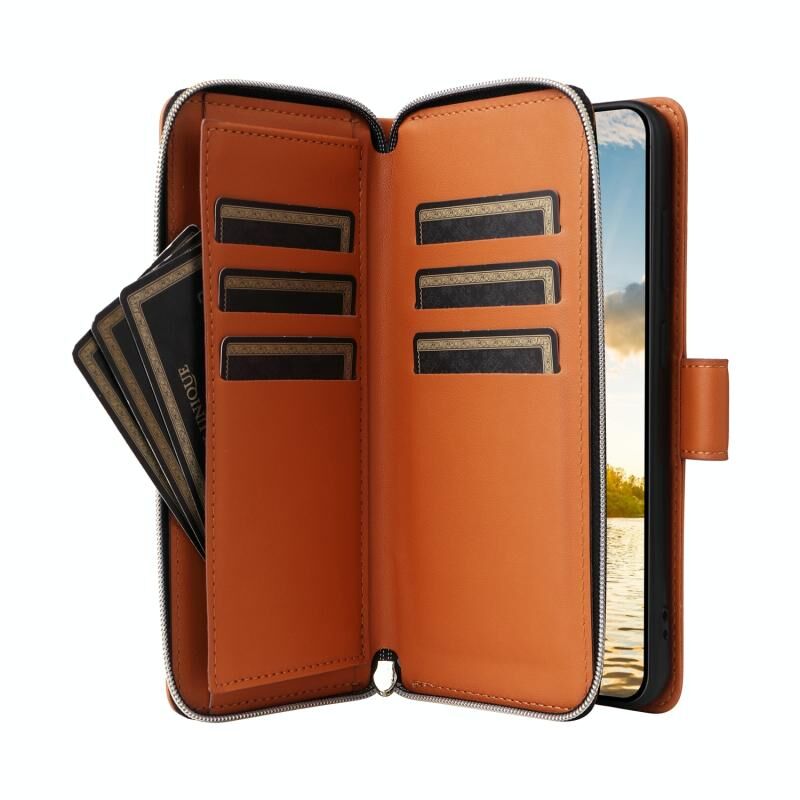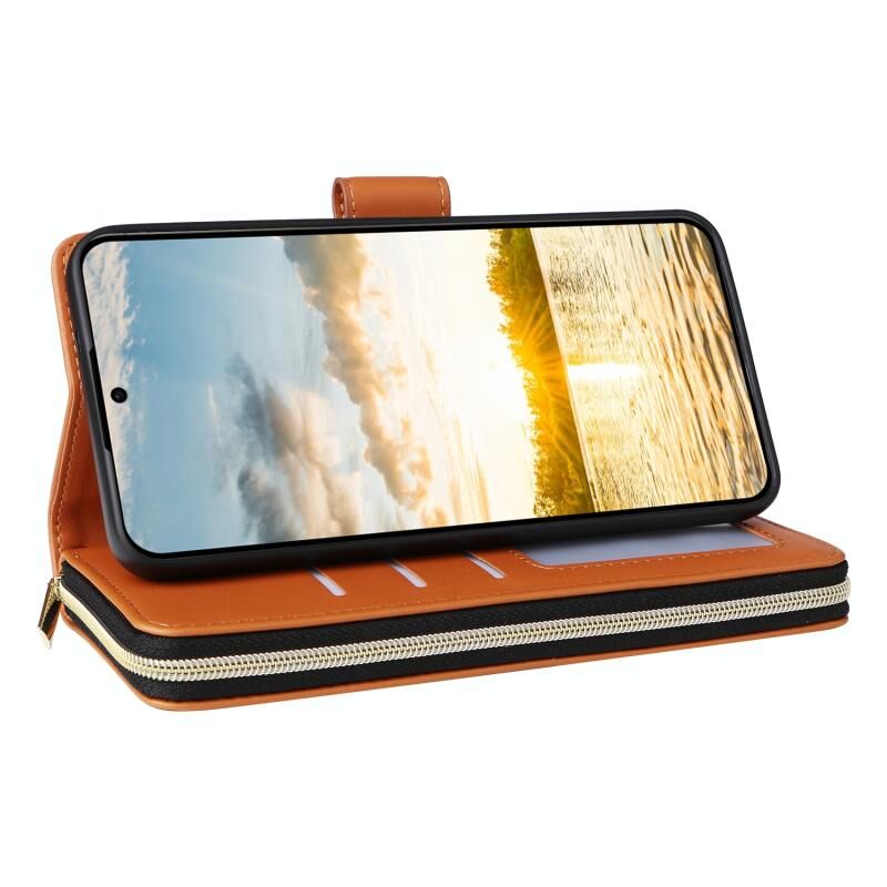 Για Samsung Galaxy S23 FE 5G εννέα-κάρτα Slots φερμουάρ πορτοφόλι τσάντα δερμάτινη θήκη τηλεφώνου (καφέ)