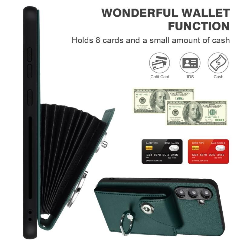 Για Samsung Galaxy S23 FE 5G Οργανική κάρτα τσάντα δαχτυλίδι κάτοχος PU υπόθεση τηλεφώνου με κορδόνι (πράσινο)