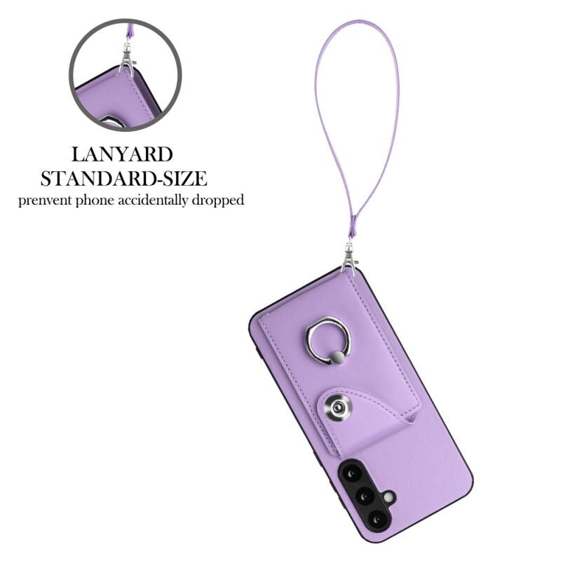 Για Samsung Galaxy S23 FE 5G Οργάνου κάρτα τσάντα δαχτυλίδι κάτοχος PU υπόθεση τηλεφώνου με κορδόνι (μωβ)