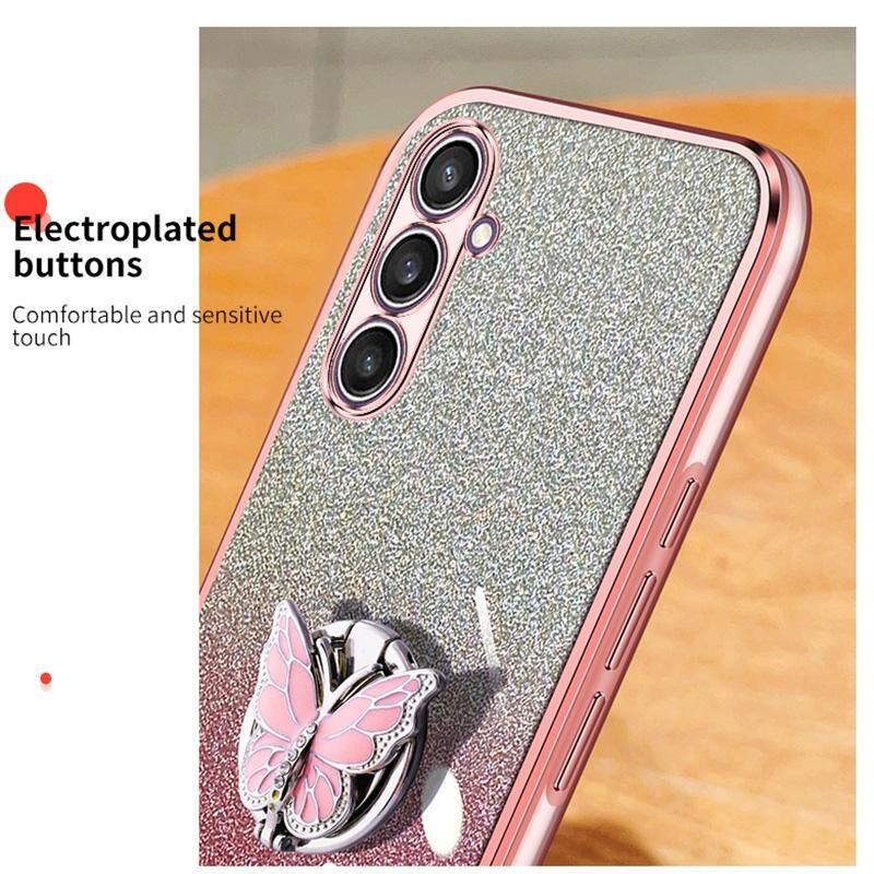 Για Samsung Galaxy S23 FE 5G Επιμεταλλωμένο βαθμιδωτή Glitter πεταλούδα κάτοχος TPU υπόθεση τηλεφώνου (Sierra Blue)
