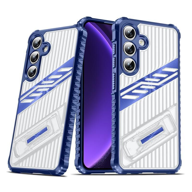 For Samsung Galaxy S23 FE 5G Plating Holder PC Hybrid TPU Phone Case(Navy Blue)