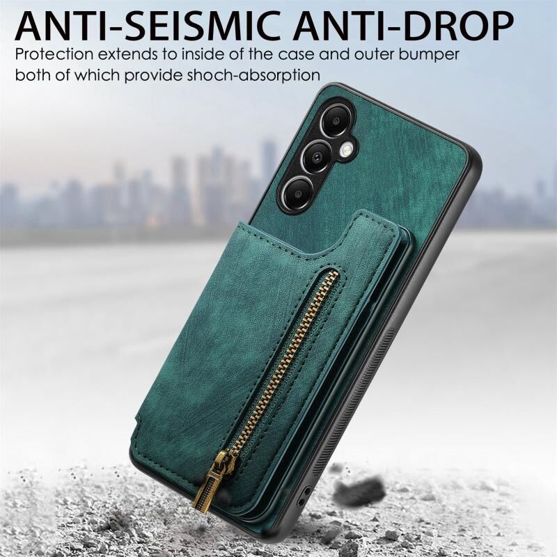 Για Samsung Galaxy S23 FE 5G Retro δέρμα φερμουάρ πορτοφόλι πίσω θήκη τηλεφώνου (πράσινο)