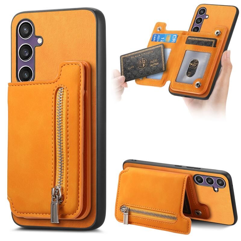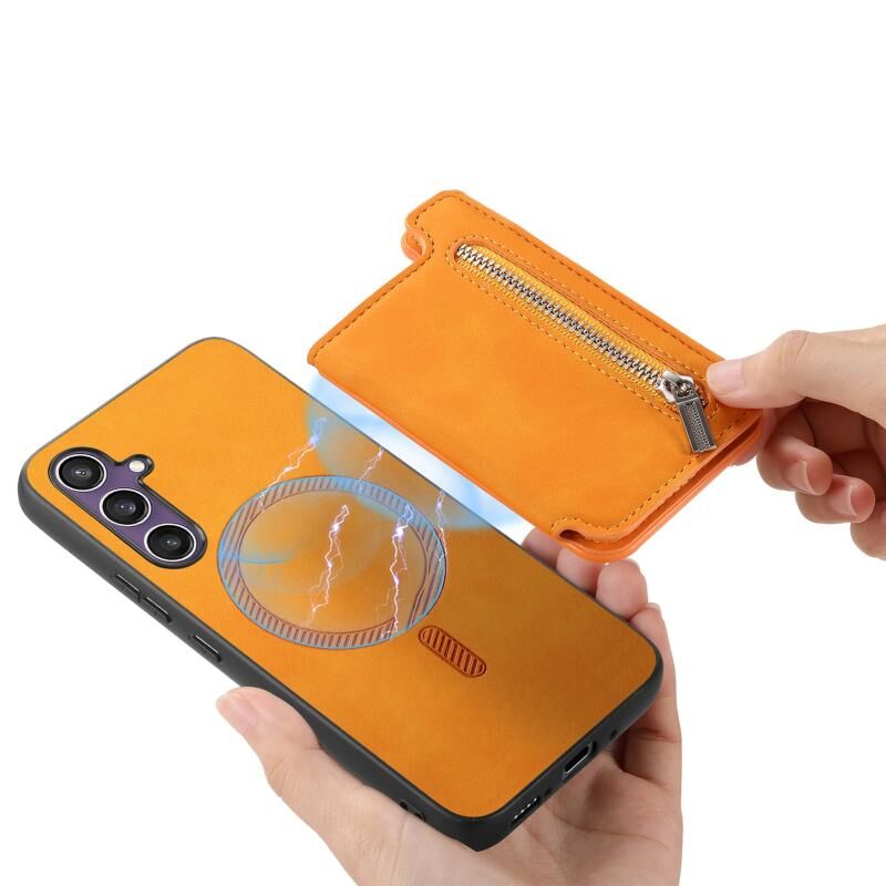 Θήκη κινητού Samsung Galaxy S23 FE 5G με φερμουάρ, τσέπη για κάρτες και μαγνητική σύνδεση τύπου MagSafe (Κίτρινο)