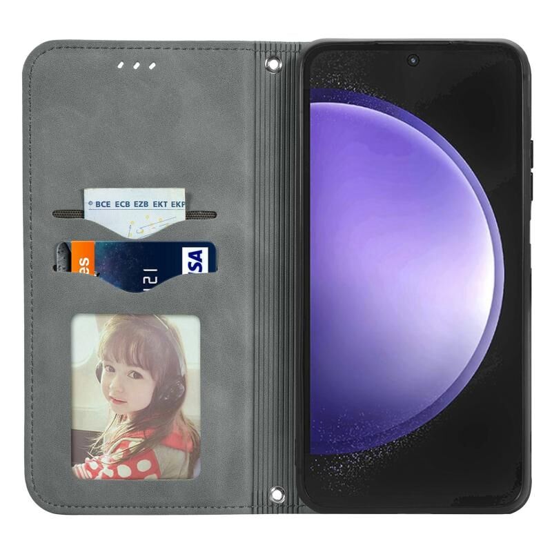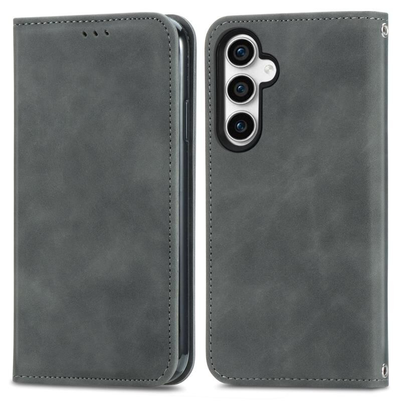 Για Samsung Galaxy S23 FE 5G Retro Skin Feel μαγνητική δερμάτινη θήκη τηλεφώνου (γκρι)
