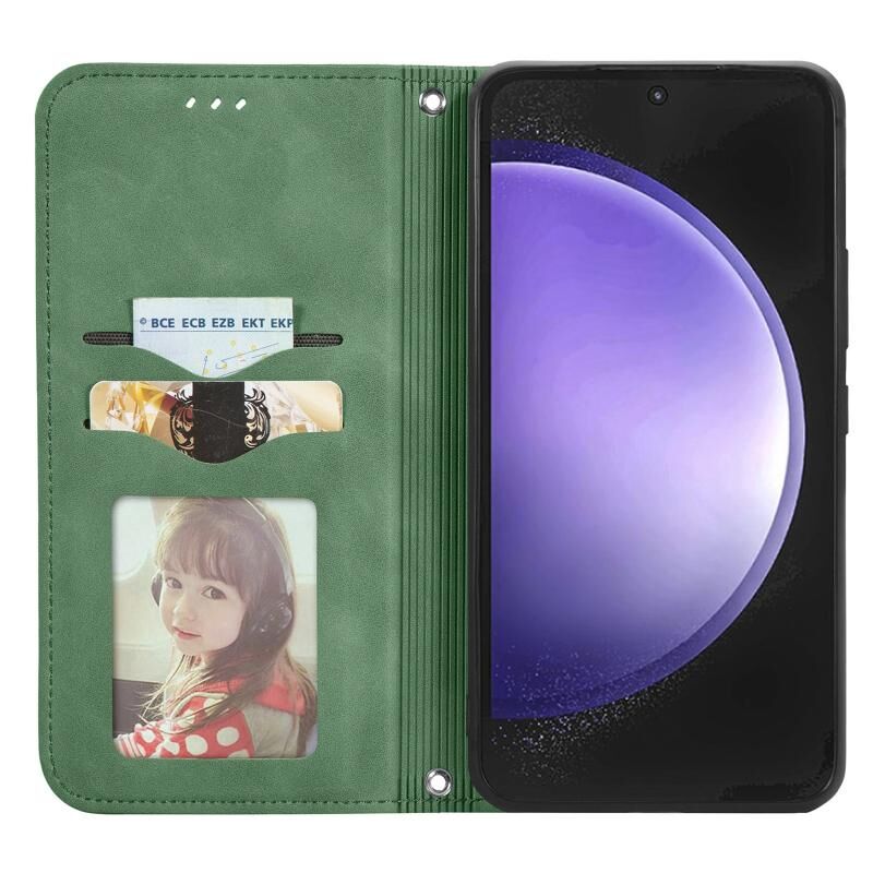 Για Samsung Galaxy S23 FE 5G Retro δέρμα αίσθηση μαγνητική υπόθεση τηλεφώνου δέρμα (Πράσινο)