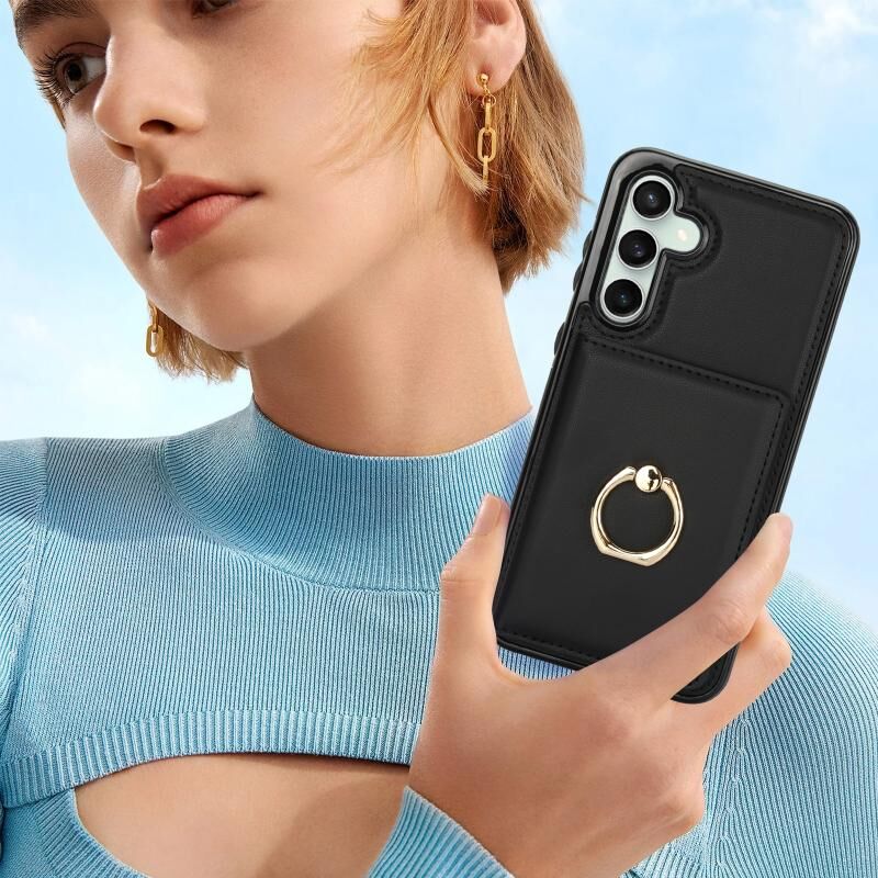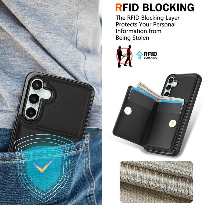 Για Samsung Galaxy S23 FE 5G RFID Anti-theft κάρτα δαχτυλίδι κάτοχος τηλέφωνο υπόθεση (Μαύρο)