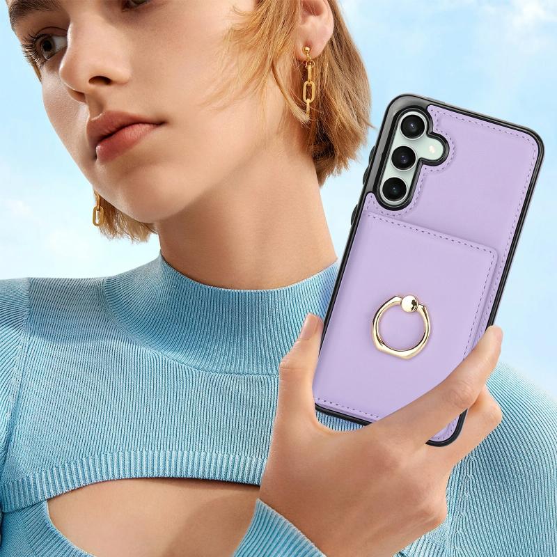 For Samsung Galaxy S23 FE 5G RFID Anti-theft Card Ring Holder Phone Case(Purple)