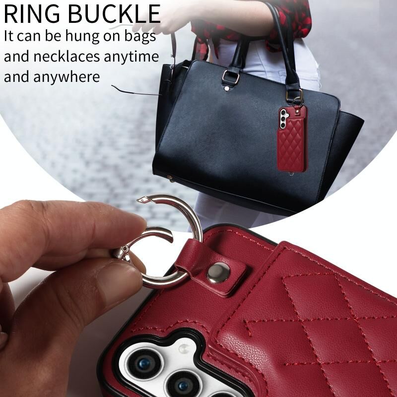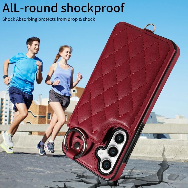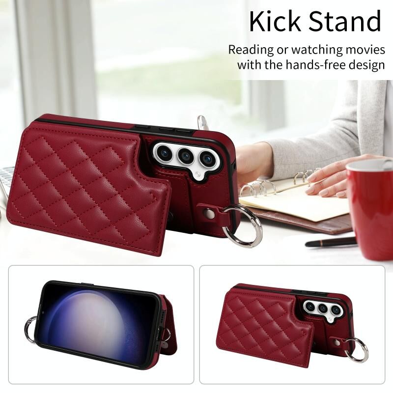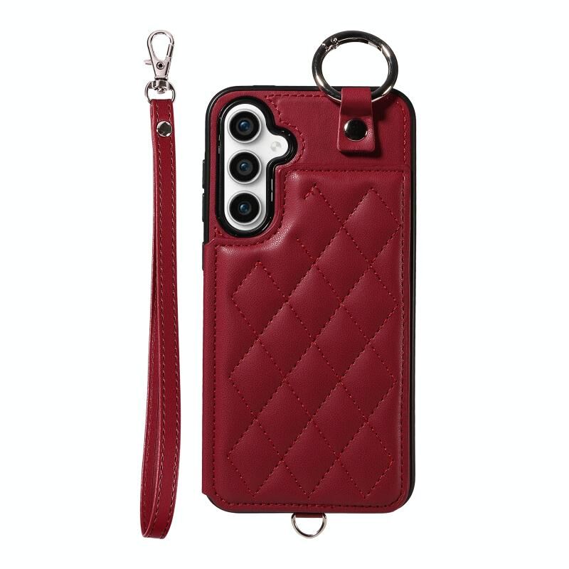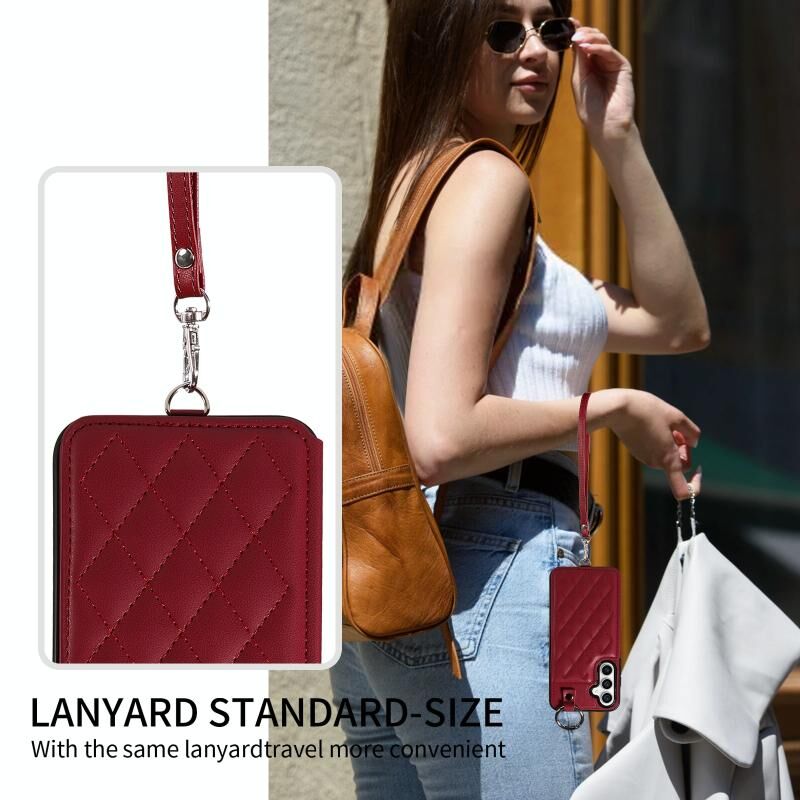 Για Samsung Galaxy S23 FE 5G Rhombic υφή κάρτα τσάντα θήκη τηλεφώνου με σύντομο κορδόνι (κόκκινο κρασί)