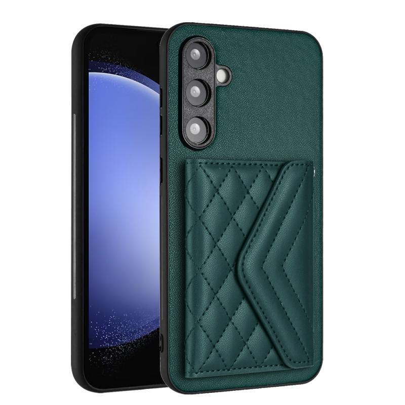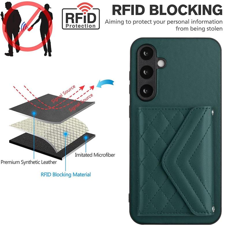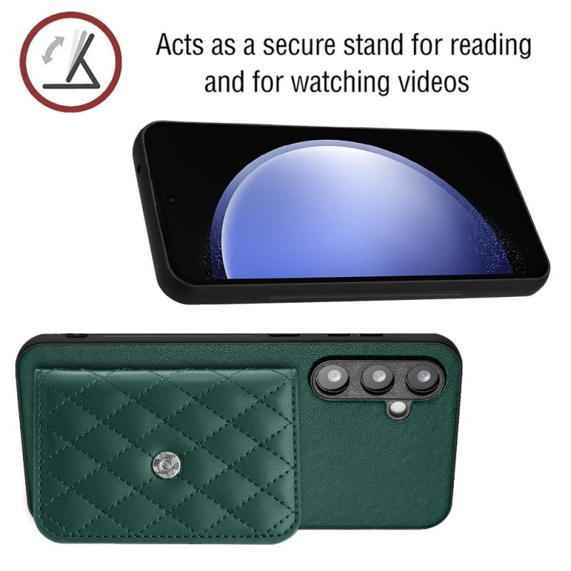 For Samsung Galaxy S23 FE 5G Rhombic Texture Card Bag RFID Phone Case with Long Lanyard(Green)