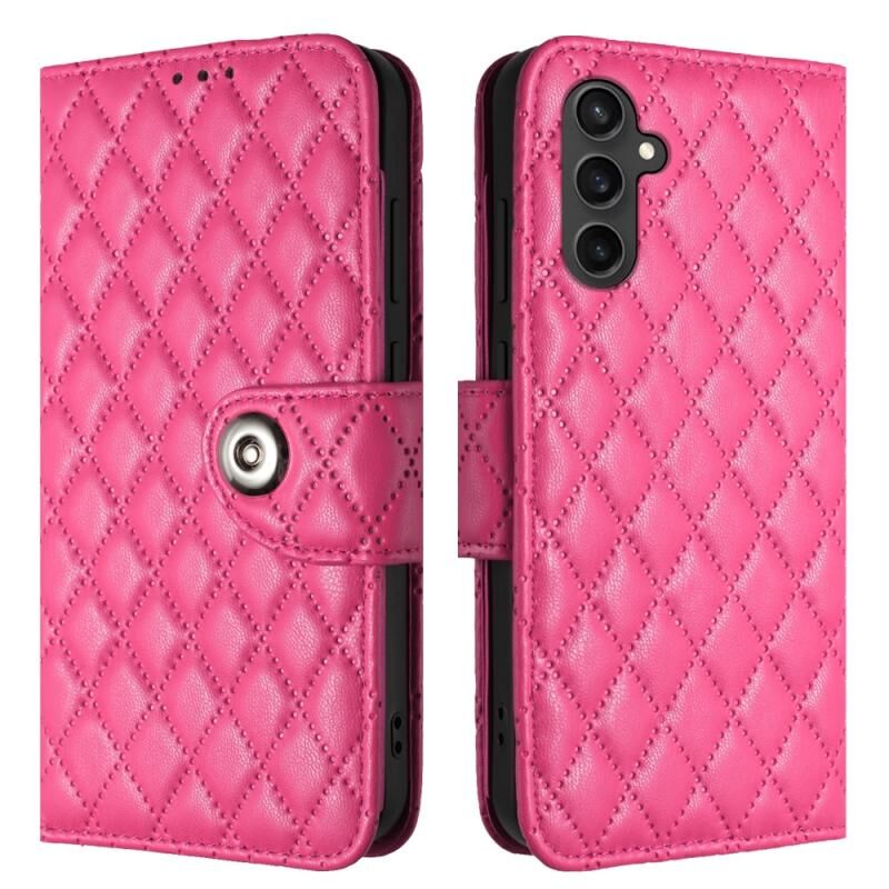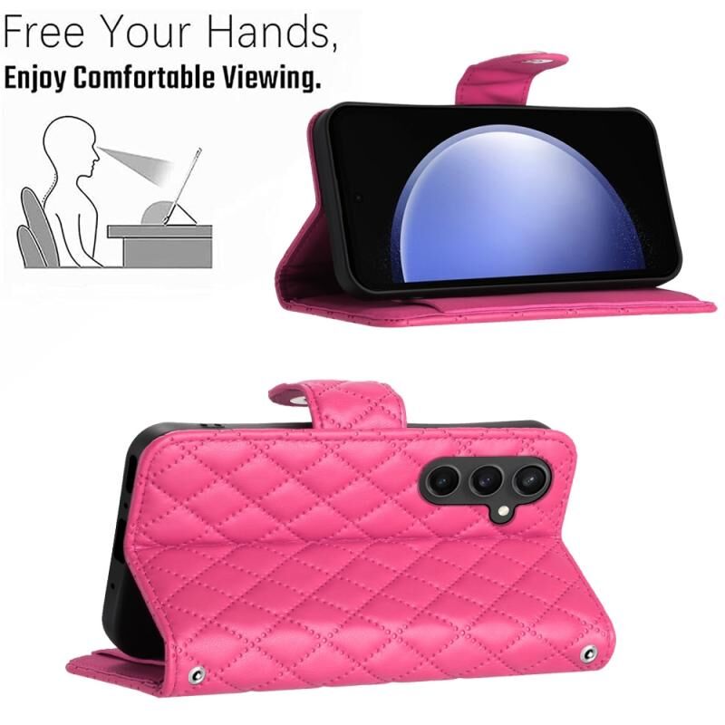 Για Samsung Galaxy S23 FE 5G Rhombic υφή Flip δερμάτινη θήκη τηλεφώνου με κορδόνι (Rose Red)