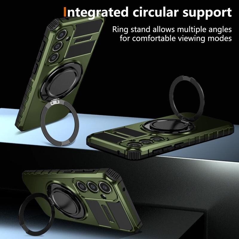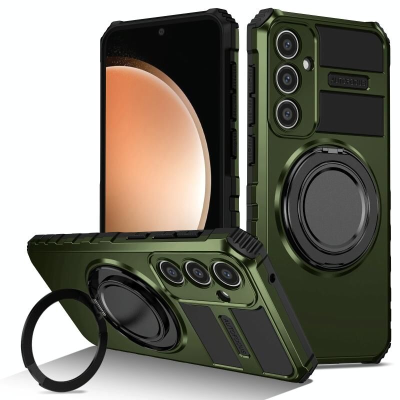 Για Samsung Galaxy S23 FE 5G Περιστρεφόμενη μαγνητική θήκη τηλεφώνου (σκούρο πράσινο)